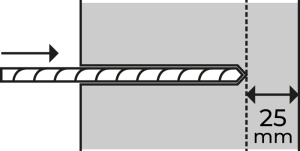 When drilling into the wall, the hole should be to a depth of 25mm of the opposing face. (As shown.)